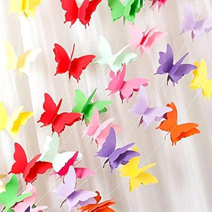 Amazon Com Rainbow Butterfly Paper Garland Party Decorations